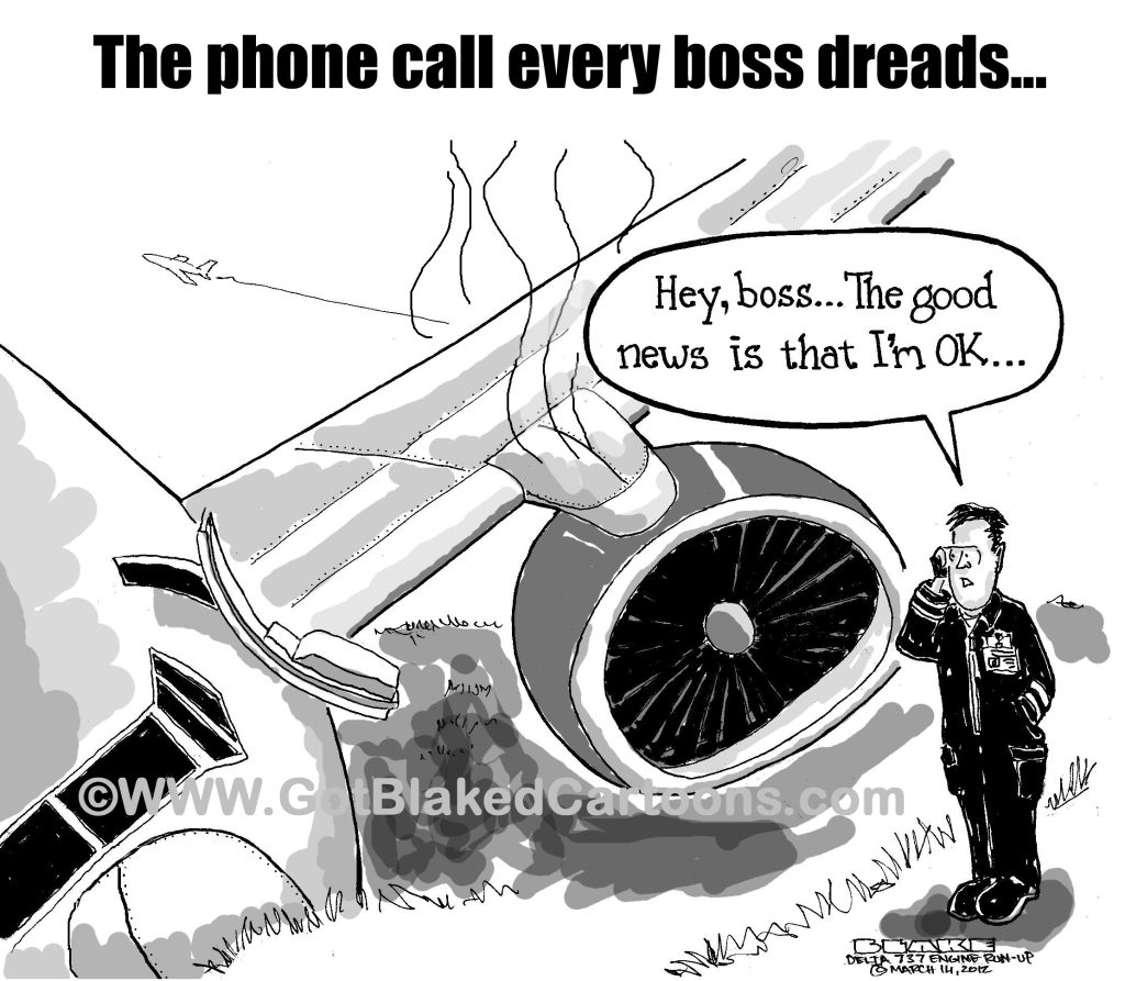 In the middle of the night on May 12, 2012, two Delta Airlines mechanics were doing a static test of the engines on a Boeing 737. While the engines were being run up, with the mechanics running operating the plane from the cockpit, the brakes failed and the 737 rolled off of the tarmac and down a hill. Can you imagine the call to the boss that the mechanics had to make?!?!