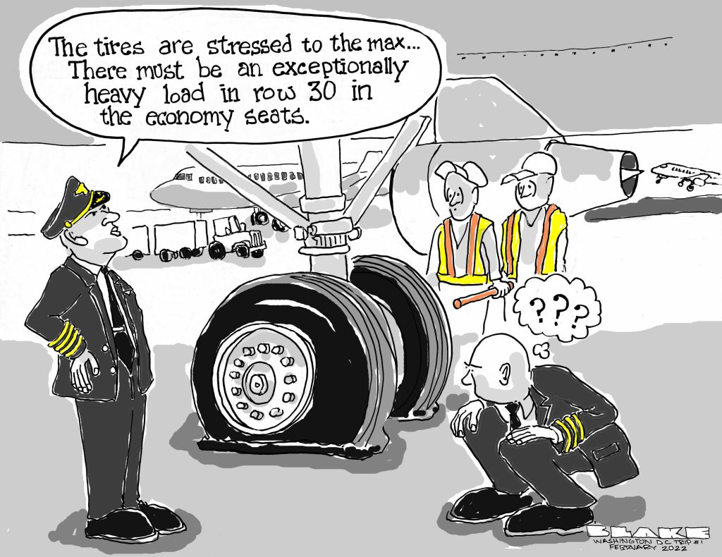 heavy loadBy Blake / May 18, 2025 At the end of my police career I would fly back and forth from Washington DC a few times a year. Sometimes I imagined that when the pilots were doing their pre-flight inspections they noticed the extra heavy load on the tires right under my seat…