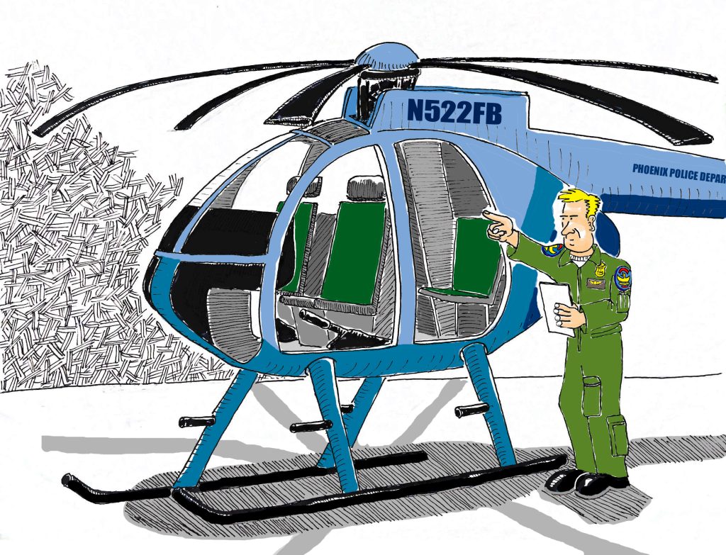 For many years the Phoenix Police Department flew MD-500N Notar helicopter. “NOTAR” refers to No Tail Rotor. Instead of a tail rotor the NOTAR used vectored exhaust gases from the jet engine to maintain stable flight. Early in my police career I had the opportunity to fly on the NOTARs often. But, I really didn’t enjoy being in them because they were small and smelled heavily of jet fuel in the cabin. I never got totally airsick but every time I flew in the NOTAR I got close to throwing up. The new Euro Copters that the Department now flies are much nicer to be a passenger in…They have a roomy airconditioned cabin.